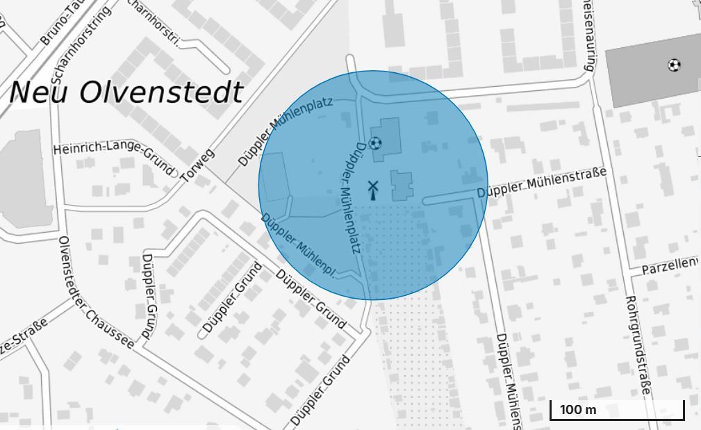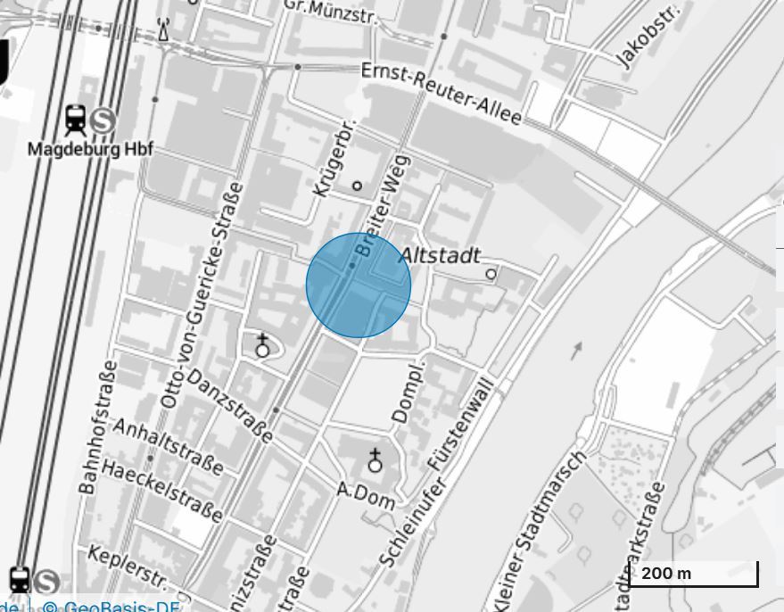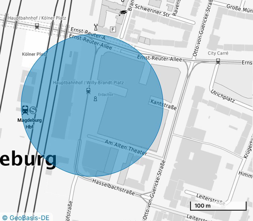 Das geografische Gebiet wird durch einen Kreis mit dem Radius von 150 m begrenzt mit dem Mittelpunkt auf der Koordinate 52.0899N 11.57338E und erstreckt sich vom Boden bis 150 m über dem Boden.