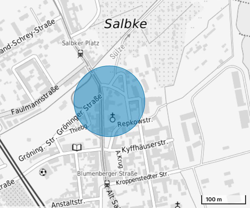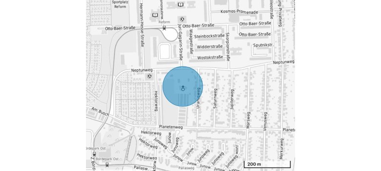Das geografische Gebiet wird durch einen Kreis mit dem Radius von 100 m begrenzt mit dem Mittelpunkt auf der Koordinate 52.13001N 11.56336E und erstreckt sich vom Boden bis 150 m über dem Boden.
