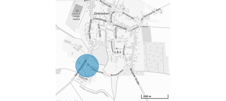 Das geografische Gebiet wird durch einen Kreis mit dem Radius von 100 m begrenzt mit dem Mittelpunkt auf der Koordinate 52.12542N 11.32861E und erstreckt sich vom Boden bis 150 m über dem Boden.